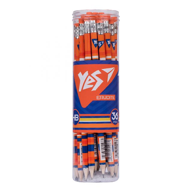 Олівець графітний круглий з ластиком Erudite, YES (36 шт. в пласт.тубусі)