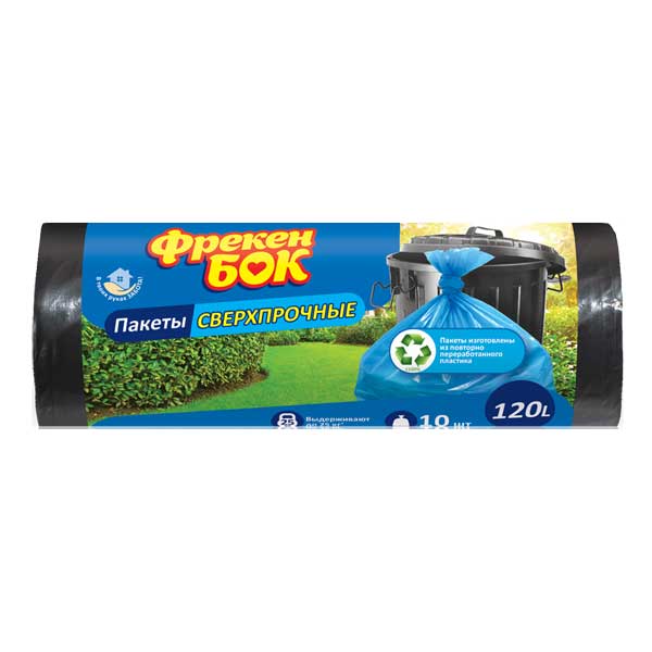 Пакети для сміття зміцнені поліетиленові 120л ФРЕКЕН БОК 70х110см (10 шт. в рул.)