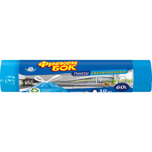 Пакети для сміття 60л (10шт в рул.) з затяжкою сині ФРЕКЕН БОК