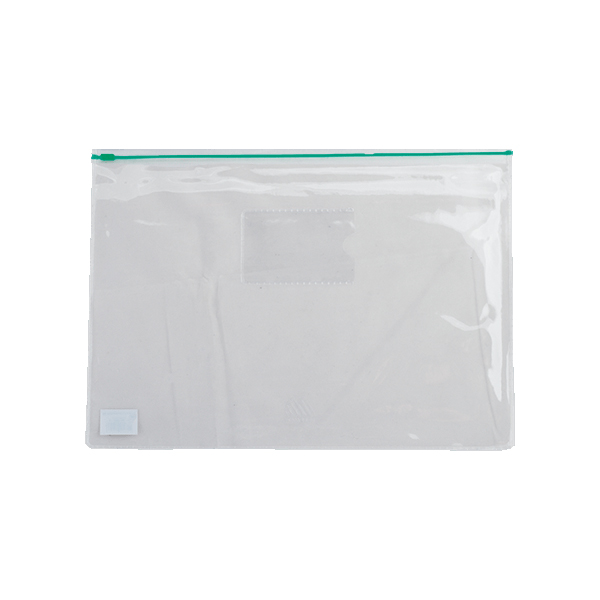 Папка-конверт на блискавці zip-lock А5, 160 мкм, глянсова прозора, колір блискавки зелений, BUROMAX