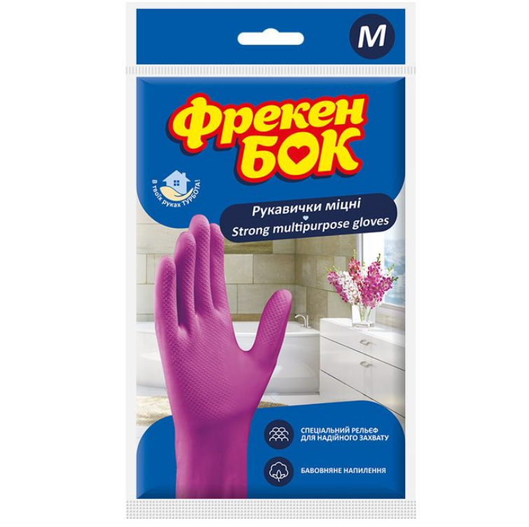 Рукавички універсальні гумові (M) збільшеної щільності, (1пара в уп.), рожеві, ФРЕКЕН БОК