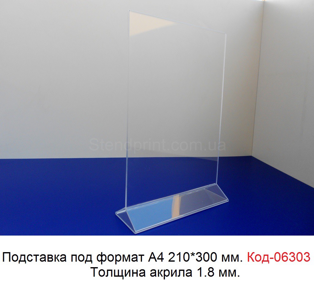 Акрилова підставка А-4 вертикальна 210*297 мм (Меню холдер), Код-06303-1