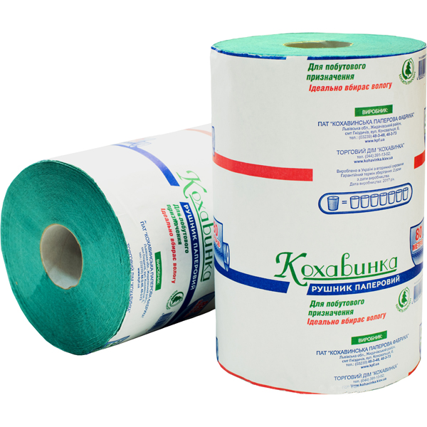 Рушники паперові рулонні, 80м 600відр., 1шт зелені, КОХАВИНКА