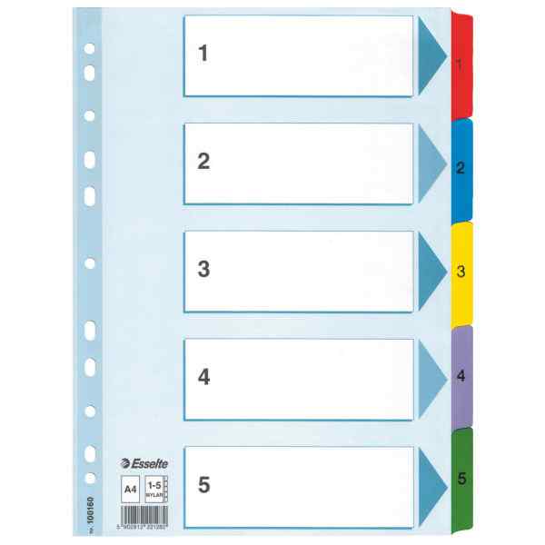 Розділювачі картонні А4, цифрові 1-5, 5арк/пач, ESSELTE