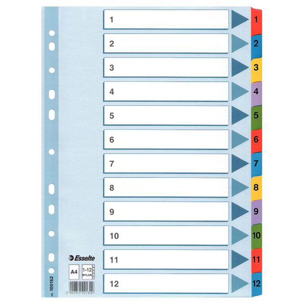 Розділювачі картонні А4, цифрові 1-10, 10арк/пач, білі, ESSELTE