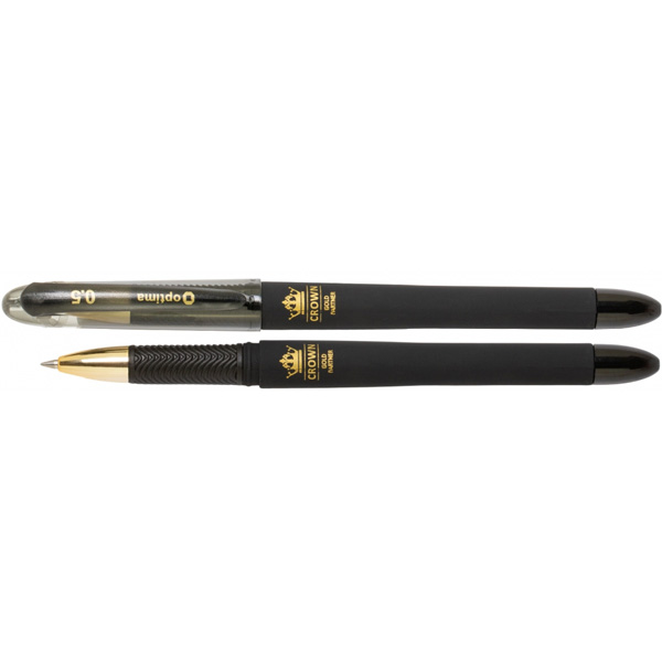 Ручка гелева 0,5 мм CROWN, прогум. грип, чорна, OPTIMA