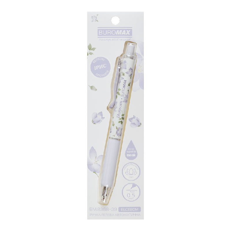 Ручка гелева автоматична BLOSSOM, 0.5 мм, ароматний грип, Ірис, сині чорнила, в блістері