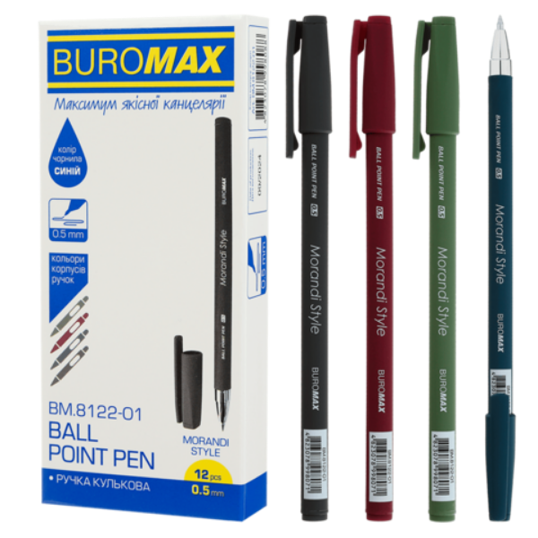 Кулькова ручка MORANDI STYLE від BUROMAX – витончений та виконаний в трендових кольорах моранді пишучий інструмент для бізнесу, школи та дому. Така універсальна ручка одночасно дуже проста і стильна, має надійний пишучий вузол і чорнило з покращеними показниками в'язкості, підійде для офісних працівників, для використання в побуті, для навчання тощо.