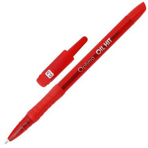 Ручка масляна 0,5 мм OIL HIT, гумовий грип, червона, OPTIMA