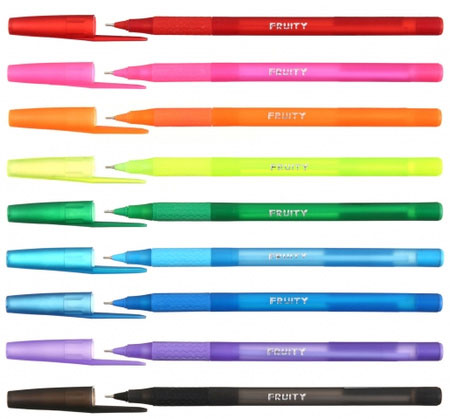 Ручка масляна 0,7 мм FRUITY, гумовий грип, корпус асорті, синя, ECONOMIX