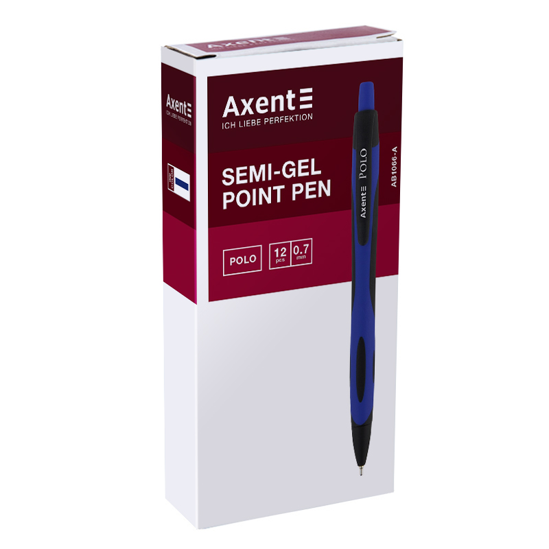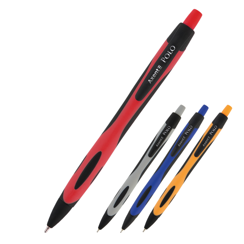 Ручка масляна автоматична 0,7 мм Polo, прогум. корпус асорті, синя, AXENT
