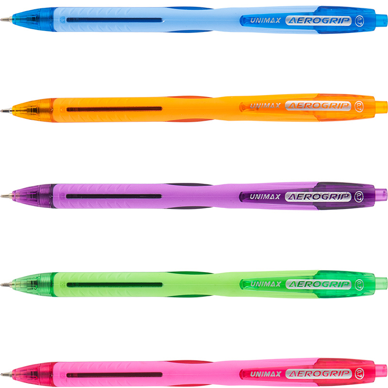 Ручка кулькова автоматична 0,7 мм Aerogrip-2, корпус асорті, синя, UNIMAX