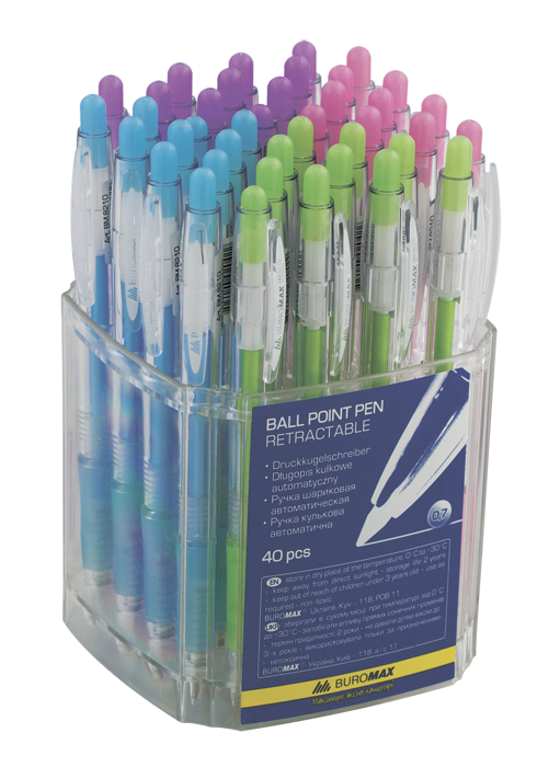 Ручка кулькова автоматична 0,7 мм BM.8210, корпус асорті, синя, BUROMAX