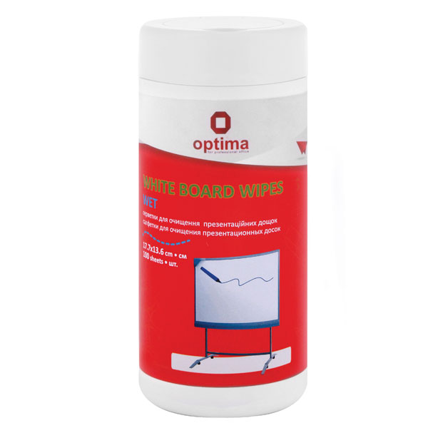 Салфетки влажные для чистки белых магнитных сухостираемых досок, пластиковый бокс, 100шт., OPTIMA