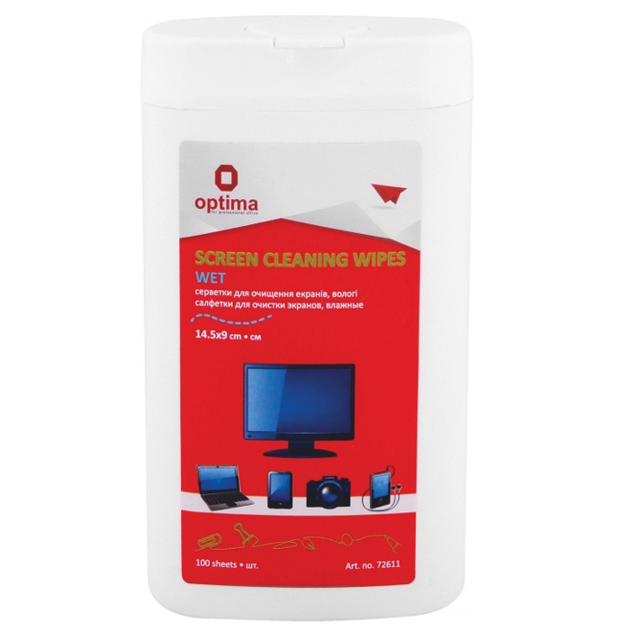 Серветки вологі для екранів, 100шт., OPTIMA