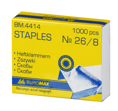 Скоби №26/8 Люкс 1000шт, BUROMAX