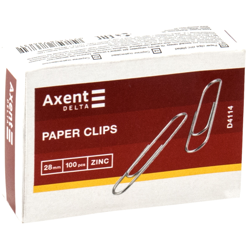 Скріпки канцелярські 28мм закруглені, нікельовані 100шт, AXENT