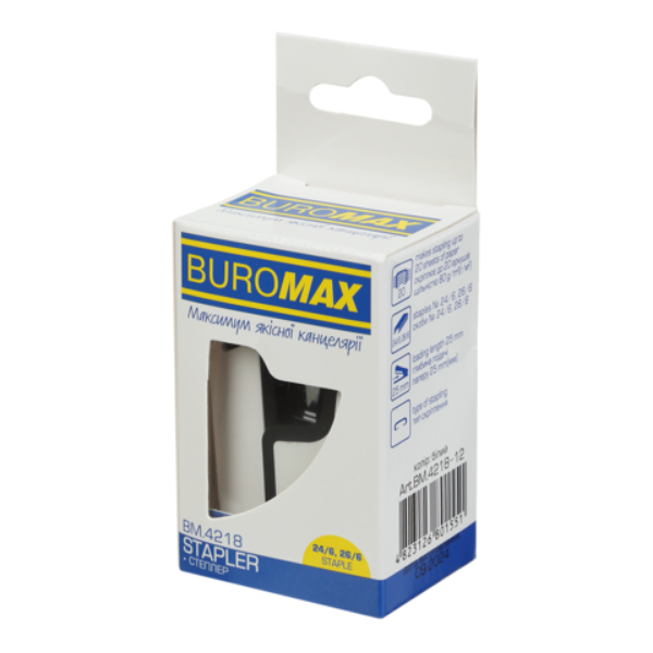 Степлер пластиковий міні 20 аркушів, №24, 26 білий BUROMAX