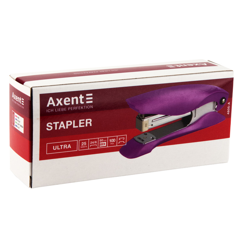 Степлер пластиковий 25 аркушів, №24/6, Ultra, рожевий, AXENT