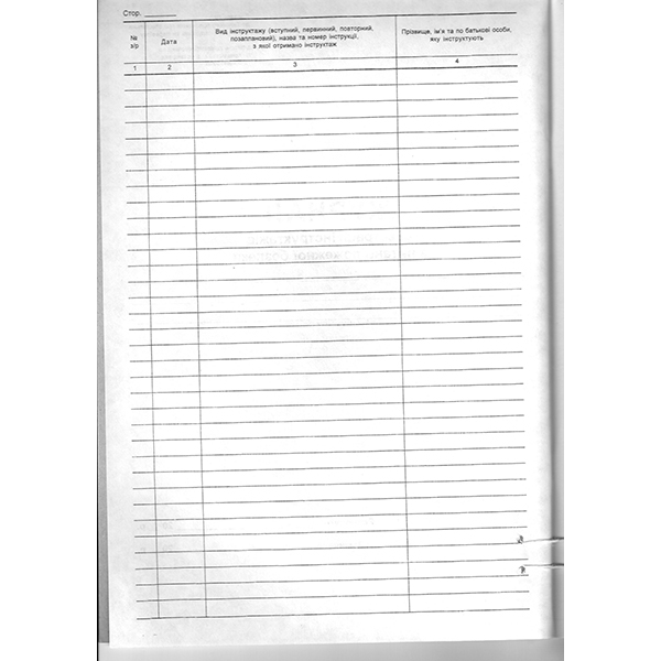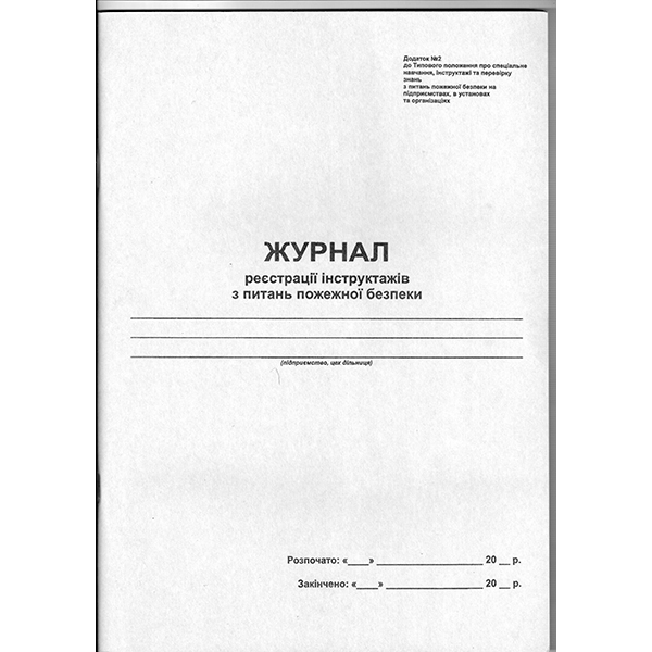 Журнал реєтрації інструктажу з питань пожежної безпеки дод.2,А4 офсет 48л, мяка обкладинка
