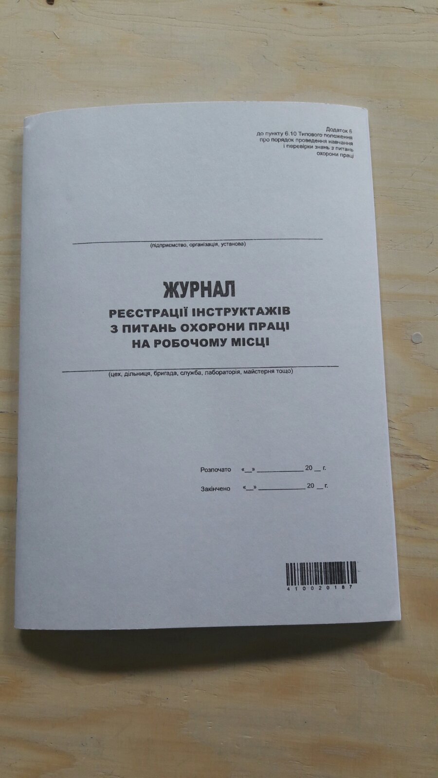 Журнал реєстрації інструктажу з питань охорони праці на робочому місці, дод.6, А4 офсет 48арк.